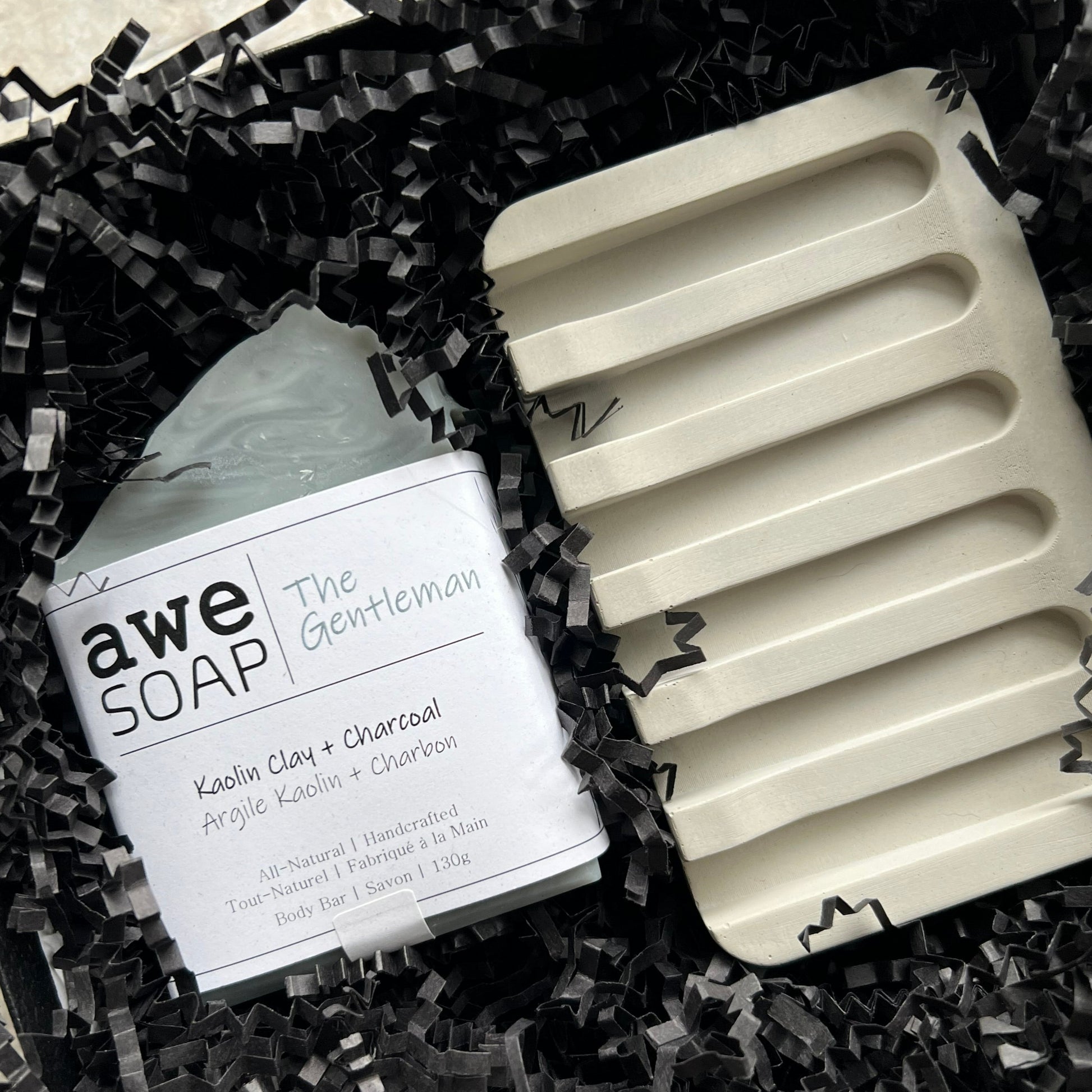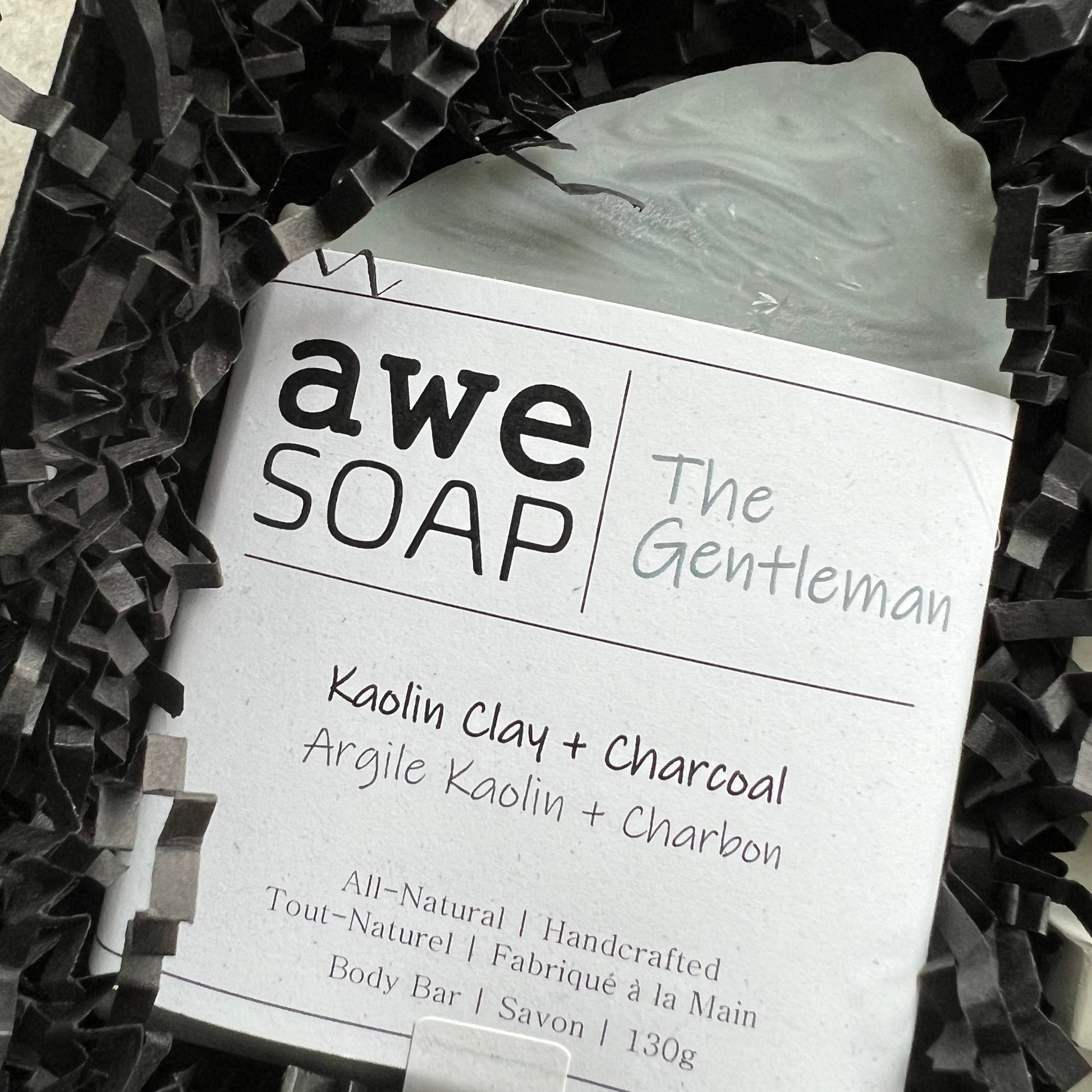 Elevate your grooming with this luxurious body bar, infused with nourishing oils, detoxifying charcoal, and kaolin clay. The Gentleman cleanses, revitalizes, and leaves your skin feeling smooth and refreshed. A perfect blend of sophistication and care—ideal as a gift or a treat for yourself.